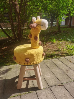 结合两种不同的毛线区分娃娃的样子,黄色为偏软的毛线,白色为偏硬类似的发带。这款椅子样貌比较,凳子较矮小可爱更适合儿童。
