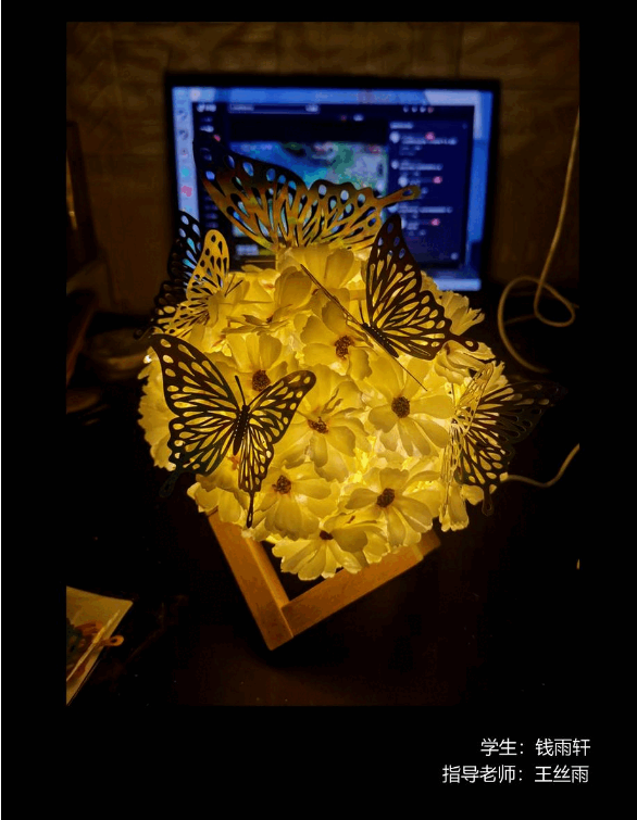 在现实生活中,人们可能很少接触大自然,没有机会去亲近绿色,在我们绘画和制作的同时,我们也被美好的绿色和漂亮的花洗涤。我认为唯有永生,唯有印在凳子上的花,才能永生,所谓倚椅盛花。作品整体充满梦幻而浪漫的气息,好比盛夏始,万物生。更具有文艺韵味。