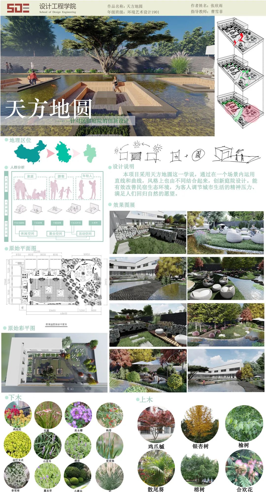 课程强调实用性和创新性,在学生已掌握《园林植物造景设计》课程理论知识的前提下,强化学生自我思考问题,动手设计实践的基本能力。通过对专题项目的设计训练,激发学生的创造力、引导学生树立自信心、建立较强的设计逻辑。理论与实践相结合,使学生获得更扎实的专业知识与技能,为今后走向社会工作打下坚实的基础。