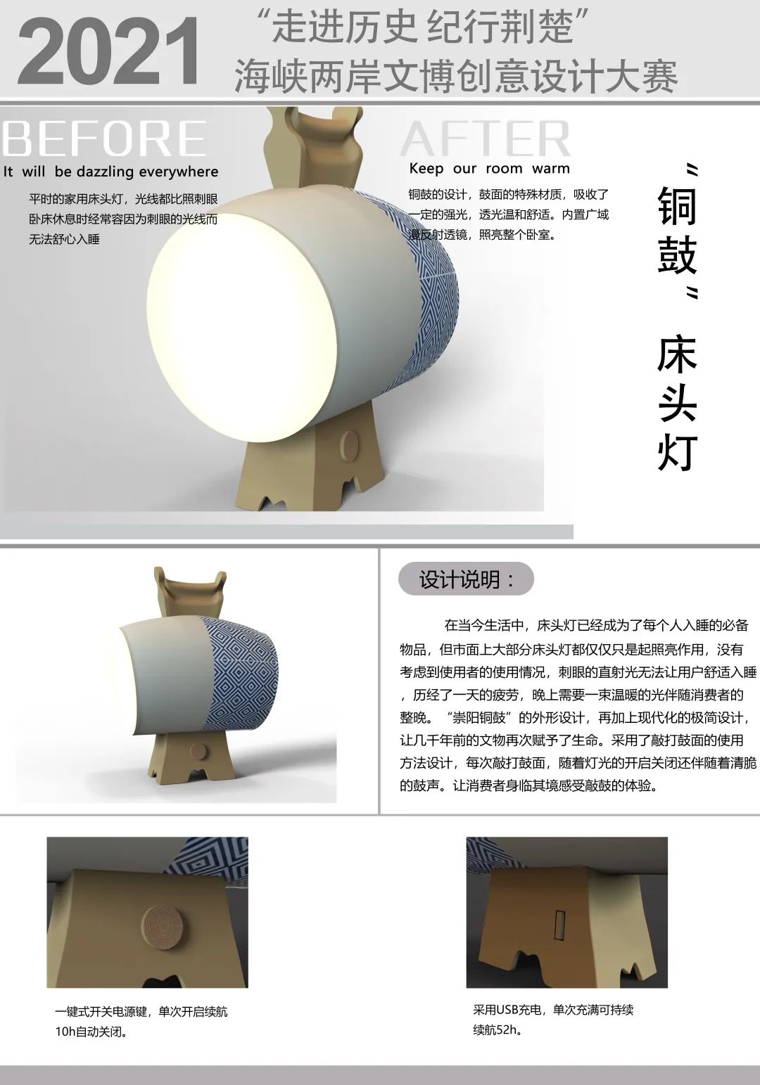 为了让海峡两岸学子深入了解湖北省博物馆珍贵文物及背后的历史信息,感受荆楚文化的魅力,积极挖掘和探索文物的历史、艺术、科学、文化价值与使用场景、实用功能、创意设计及市场需求的结合,湖北省人民政府台湾事务办公室、湖北省文化和旅游厅(湖北省文物局)主办,海峡两岸考古教学交流基地、湖北省博物馆(湖北省文物考古研究所)协办了2021首届“走进历史 纪行荆楚”海峡两岸文博创意设计大赛。