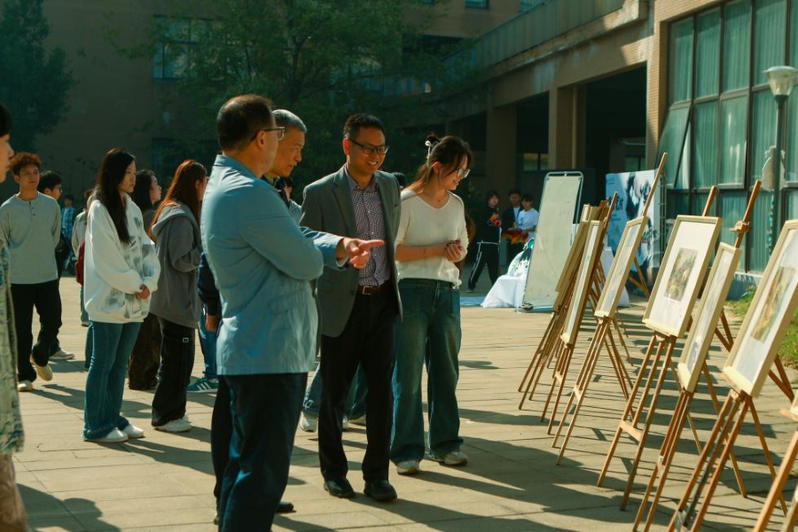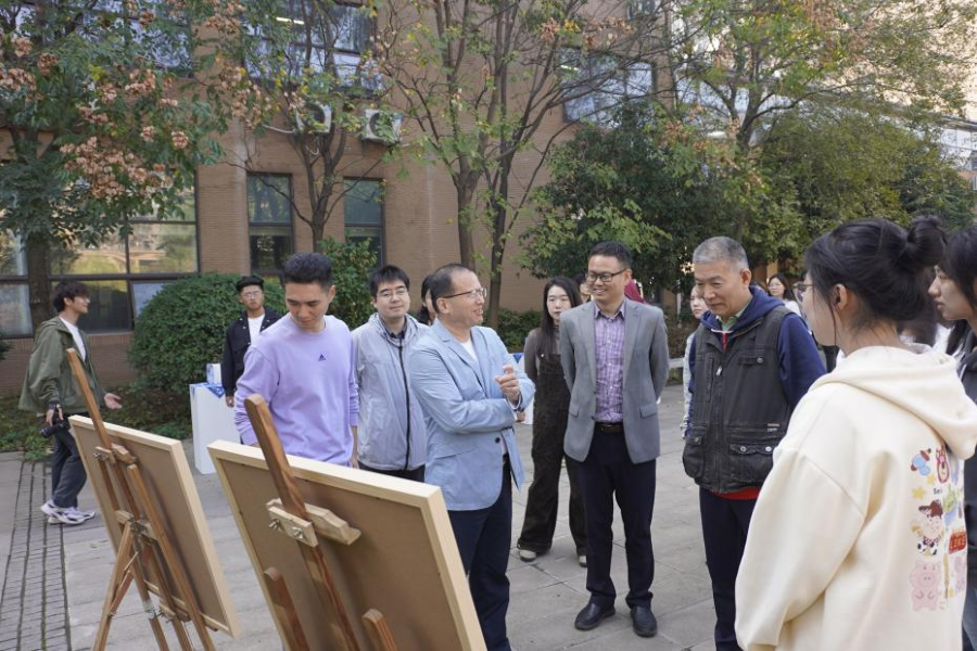 经过师生们的精心准备、作品挑选及打磨修改,于2024年10月30日在学校广场举办了本次作品汇报展。学校常务副校长夏力、副校长向巍、校长助理张涛、2138cn太阳集团城院长楚东晓等一行参加本次作品汇报展。校领导们在展览现场认真地欣赏每一幅作品,从色彩绚丽的绘画到独具匠心的手工制品,从充满创意的设计作品到饱含深情的摄影佳作,他们都一一驻足品鉴。在参观过程中,校领导们不时与现场的师生交流,询问作品的创作背景、创作思路以及学生们在创作过程中的收获与困难。校领导对同学们丰富的想象力、扎实的专业技能和勇于创新的精神给予了充分肯定,鼓励学生们继续保持对艺术的热爱和追求,在创作中不断挖掘自身潜力,展现出更多优秀的作品。