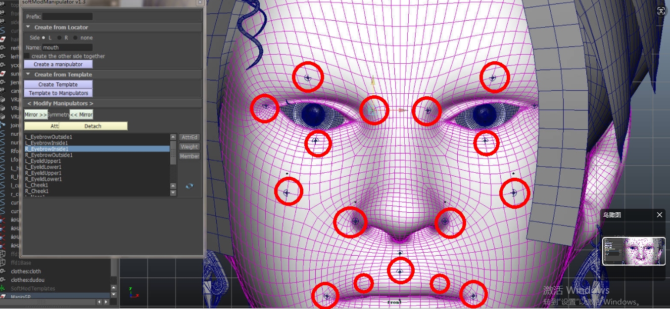 Soft Mod Manipulator是与Maya软件无缝整合的面部表情生成插件。通过拖拽将插件拉入Maya软件之中,可以在输入栏输入面部表情的信息和参数,生成无标记的可控制点,然后通过绑定到模型上,达到控制住模型表面变化的目的。