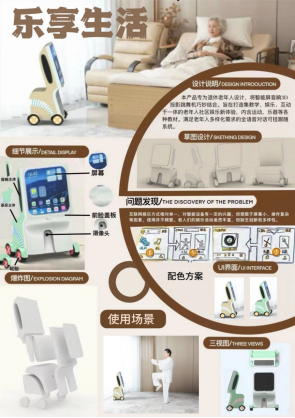 随着人口老龄化趋势的加剧,退休老人的养老娱乐需求日益增长。我们通过深入的用户研究,发现老年人对于智能设备有一定的兴趣,但受限于屏幕小、操作复杂等因素,使用并不频繁。此外,老年人的娱乐活动虽然丰富,但缺乏创新和多样性。基于这些发现,我们设计了一款专为退休老人打造的智能跟随全息娱乐机,集语音对话、AI智能监测、3D全息投影技术于一体,实现“教、学、乐”三合一的设计理念。这款设备不仅操作简单,还能提供个性化的娱乐和学习体验,让老年人的生活更加丰富多彩。通过全自动跟随系统和高隐私保护,确保老年人在使用过程中的便捷与安全。