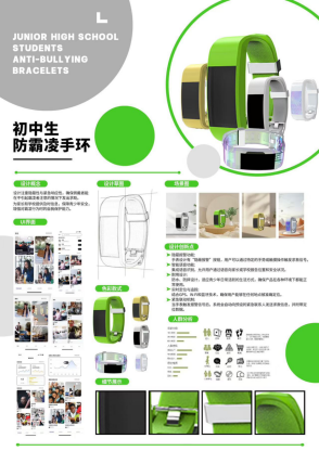 在校园霸凌问题日益严峻的今天,我们推出了一款专为初中生设计的防霸凌手环。针对校园霸凌问题,我们通过访谈法和案头法调研发现,受害者常因恐惧和缺乏支持而难以求助,施暴者可能形成暴力倾向,且现有防霸凌措施存在隐私侵犯和误报风险。基于此,我们定义了设计一款既能隐蔽报警又能保护隐私的防霸凌手环的设计目标,需要设计一款集隐蔽报警、智能语音、实时定位等功能的手环。通过隐蔽报警按钮,学生可在不引起注意的情况下快速求助;智能语音功能则允许他们通过语音向家长或学校报告情况。此外,手环的耐用设计和实时定位追踪技术,确保了在各种环境下都能正常使用,有效增强学生的自我保护能力。这款手环不仅是科技的创新,更是对校园安全的有力守护。