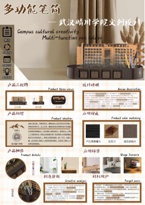 针对晴川学院丰富的历史文化资源,我们通过访谈、观察和问卷调查等方法,深入了解学生及校友对文创产品的需求。调研显示,校园文化衍生品如纪念品、文具等备受青睐,特别是融入传统与现代设计元素的产品。据此,我们提出创新设计思路,将楚文化、校园标志性景观等元素融入文创产品。这些设计旨在满足用户对个性化和文化价值的追求,同时推动晴川学院文化传承与创新,为校园文创市场注入新的活力。