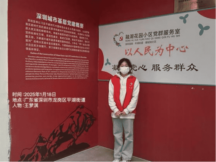 王梦淇同志于2025年1月18日至2025年1月21日在广东省深圳市龙岗区平湖街道,进行生活垃圾分类的宣传活动,增强居民环境保护意识和责任感,营造和谐社区氛围。