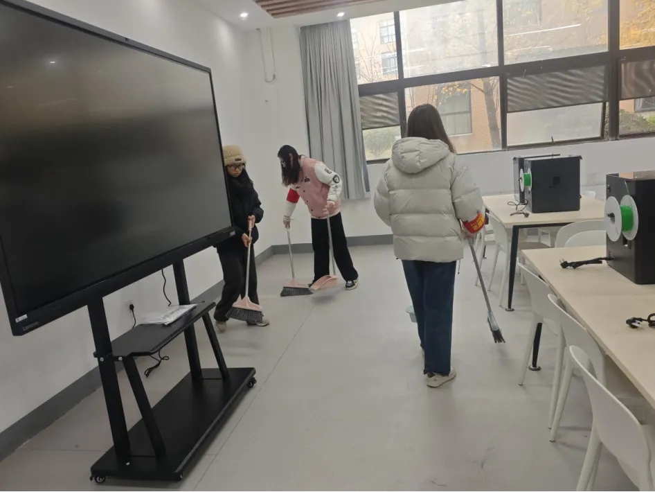 在卫生清洁活动开始前,纪检部长王舸洁同志特别强调了实验室安全规范,确保每位志愿者都能在安全的环境中进行清洁工作。