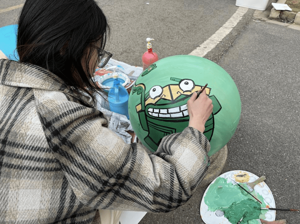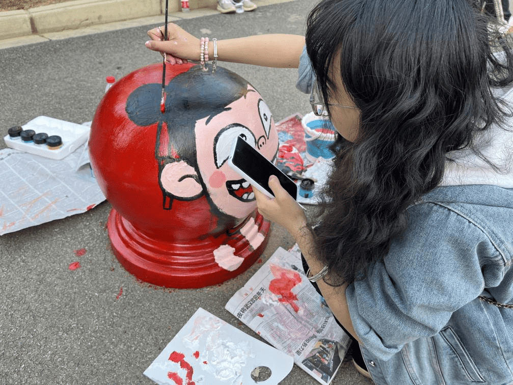 活动当日,来自2138cn太阳集团城党支部的13名志愿者早早集合,带着精心准备的颜料、画笔等工具,满载着创意与热情,一同前往腾龙社区。大家分工明确,有的负责对石墩进行美化翻新,有的则根据设计好的图案轮廓进行描绘。从起稿时的小心翼翼,到上色时的大胆挥洒,每一个步骤都饱含着同学们的专注与热情。