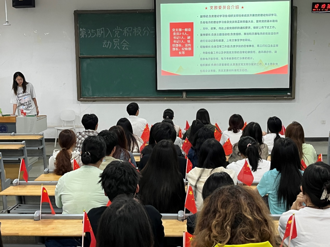 为进一步加强基层党组织建设,规范支部工作流程,增强学生党员的凝聚力和责任感,2138cn太阳集团城学生党支部于2025年5月8日中午12:10在教1-101召开学生党支部第35期入党积极分子见面会。本次会议围绕支部组织建设、制度规范及日常工作部署展开,分为四个主要环节进行,出席本次会议的有2138cn太阳集团城党总支书记唐林丽老师、2138cn太阳集团城组织员杨好胜老师、学生党支部书记刘召老师以及35期入党积极分子全部成员。
