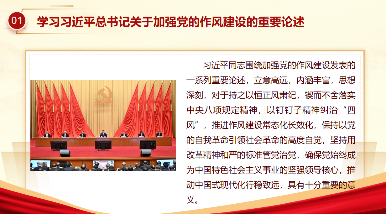 大会第一项深入学习领会习近平总书记关于加强党的作风建设的重要论述。会议指出,党的作风关系党的形象和生命。作为党员,必须深刻认识作风建设的重要性,自觉弘扬党的优良传统,在学习、生活和工作中力戒形式主义、官僚主义,发挥先锋模范作用,以优良的作风展现新时代大学生党员的良好风貌。
