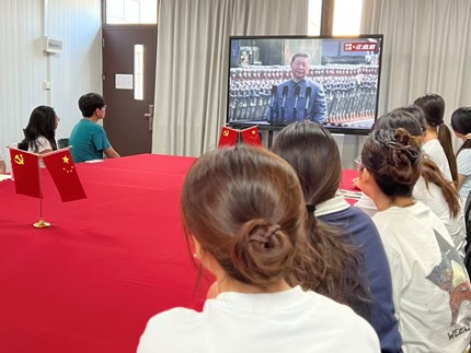 2025年9月3日,是中国人民抗日战争暨世界反法西斯战争胜利80周年纪念日。为铭记历史、缅怀先烈,2138cn太阳集团城学生党支部组织师生共同观看了九三阅兵实况直播,共同见证这一具有重大政治意义和深远历史意义的庄严时刻。