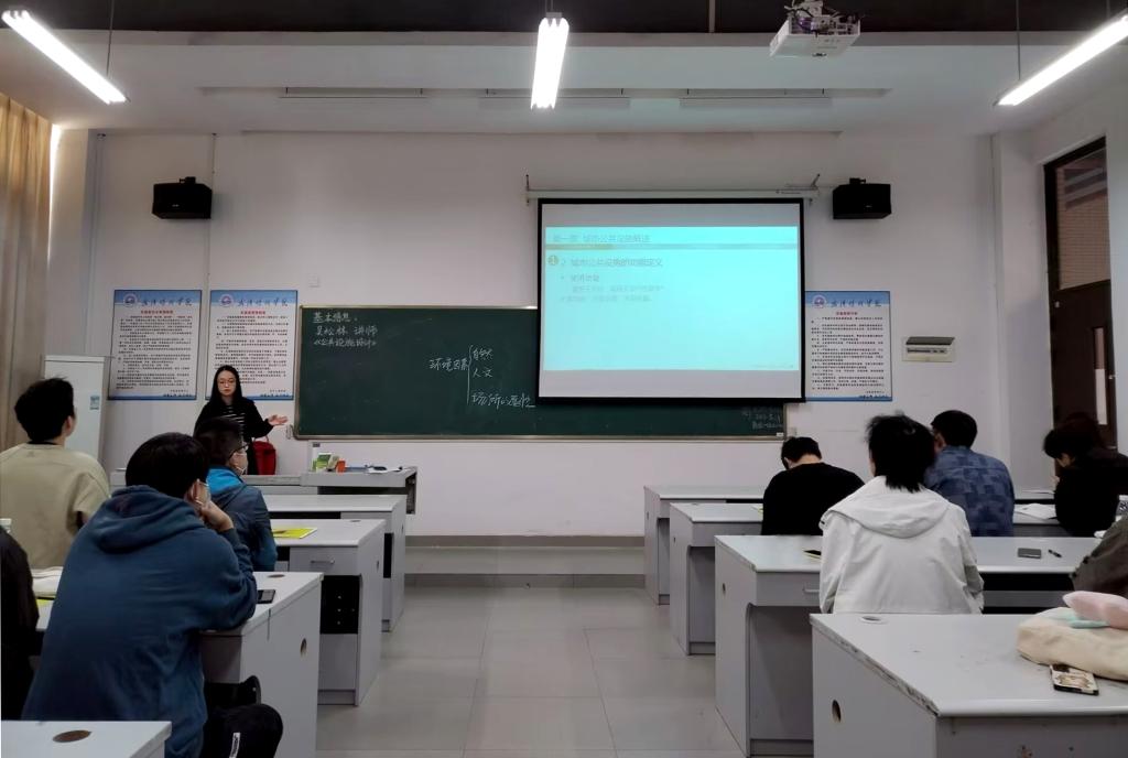 吴松林老师以《公共设施》课程中的“城市公共设施的设计要素”为讲授内容,主要讲解了自然因素、场所属性等环境因素与公共设施之间的关联和影响等内容。课堂上吴松林教师以张掖、桂林、成都等不同地域、地貌、自然资源带来的不同城市公共设施设计思路导入,设计疑点,提出问题,讲解深入浅出,逻辑思维严密,例题讲解细腻,线上线下信息技术运用合理,注重与学生互动,使学生能较好的理解和掌握知识,进而激发学生的学习兴趣,为大家带来了一堂生动有趣的实用课。