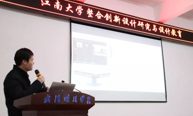 胡教授结合江南大学工业整合设计教学改革的实际情况,讲解了在设计教学中我们应该如何制定教学目标,应该培养什么样的设计师以及如何培养。他提出在新时代的背景下,应该培养能够定义产品或服务(能够通过趋势分析和用户研究明确用户需求,提出产品或服务要求),整合团队力量提供整体解决方案(以立项报告的形式,整体阐述解决方案的局部和整体属性,可行性和合理性),并具备良好团队合作和沟通能力(协调沟通能力,尤其是阐述抽象设计价值的能力)的职业设计师。并用一些教学案例来详细阐述如何实现培养目标。