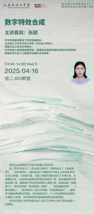主持湖北省教学改革研究项目1项,湖北省教育厅科技项目2项,教育部产学合作协同育人项目1项,获湖北省一流课程1门。获文华学院“教学质量一等奖”、“优秀潜能导师”,《数字图形》、《影视制作》获文华学院“优秀课程设计”,超星学习通优秀课程示范包,访问量逾百万;