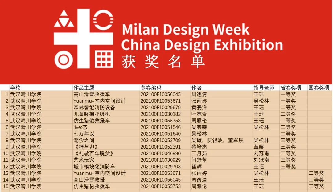 米兰设计周——中国高校设计学科师生优秀作品展面向全国高等院校艺术、设计专业师生开放作品征集投稿,展览每年举办一次,迄今已成功在米兰设计周展出优秀作品1200余件。“米兰设计周——中国高校设计学科师生优秀作品展”主题竞赛活动作为国家教育部学科级A类赛事,连续入选“全国普通高校学科竞赛排行榜内竞赛项目名单”。