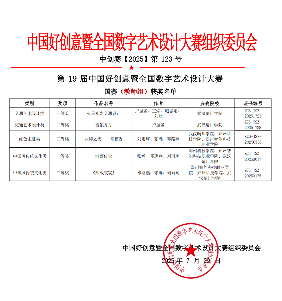 谨向所有获奖师生致以最热烈的祝贺!向默默奉献的专家领队与幕后团队致以最诚挚的感谢!晴川学院将以此为新起点,持续深化“以赛促教、以赛促研、以赛促创”,把国赛经验转化为课堂改革与产业服务的澎湃动能,助力中国数字创意产业驶向更加浩瀚的星辰大海!