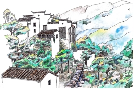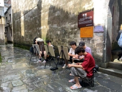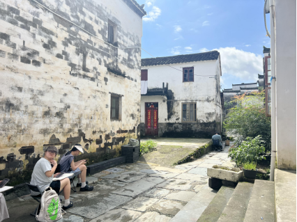 本次写生活动带领学生们探访了思溪村、延村、簧岭等风光旖旎的乡村。在教学方法上,采用“日绘夜评”模式,即白天采风写生,晚上集中点评的方式,这种模式实现了理论与实践的有机结合。