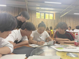 晚上,专业老师对学生们的画作进行细致的点评,我们采用以引导式、反思式学习为核心的教学方法,这不仅为学生们提供了一个对白天写生实践进行深入总结的平台,而且创造了一个促进深度学习和思考的机会。一方面,老师通过提问和引导,鼓励学生深入分析自己的作品,从构图、色彩到光影,发现创作中的亮点与不足。学生在老师的点拨下进行自我反思,思考如何改进。同时,互动式教学让学生相互讨论,分享见解,促进了知识的交流和灵感的碰撞。