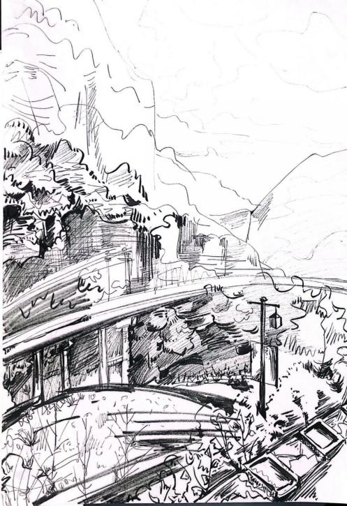 户外写生,亦难免有不顺之时,或道路坎坷难以攀登,或烈日寒风无遮蔽之处,或身体不适体力不支。然老师悉心关怀,同学热心互助之下,非但未被困难之处牵制,反而内心愈发开阔,对艺技之外的艺理亦有所感触。