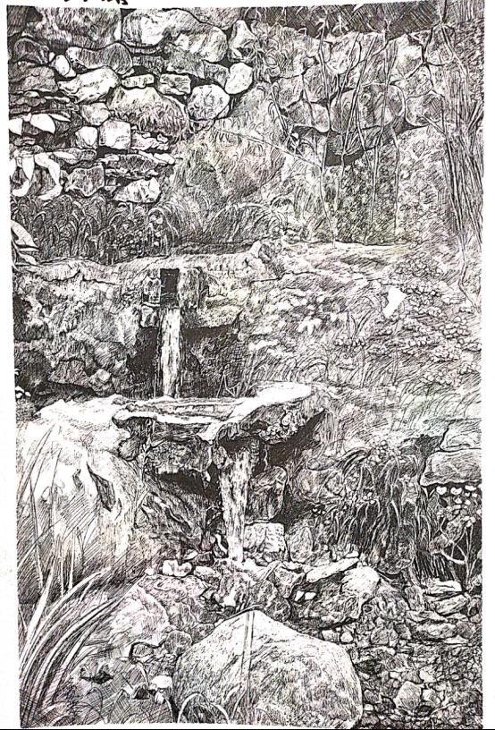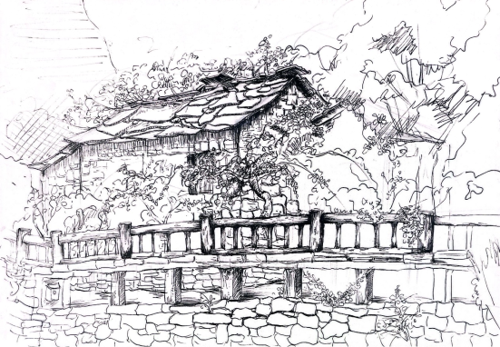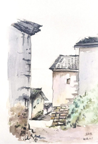 山间民居斑驳的石墙,林间缓缓流淌的溪水,云雾中若隐若现的群山,一切都如此静默,静静地立在那里,就像千年之前已是那样。而我们也像千年前的先人那般,满怀激情,用脚步与笔墨丈量着这片土地,或凭栏远眺,思忖运筹,或做稿构思,反复推敲,若有所悟,便润毫濡墨,选景铺陈,对景写生。