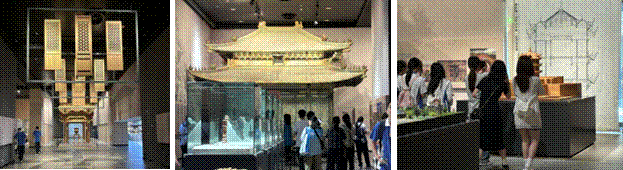 在本次考察中,同学们首先从天文图与《禹迹图》中领悟了古人对宇宙与大地“天圆地方”对称体系的思考;步入古建展厅,通过斗拱榫卯、琉璃瓦当与木塔模型,深刻感受结构力学与空间构成的智慧;而在现代与未来展厅中,则被建筑师跨界融合传统、科技与艺术的创新思维所震撼。此次考察还激发了同学们对建筑材料、可持续系统与智能建造研究的浓厚兴趣,在探索实践中欲罢不能。
