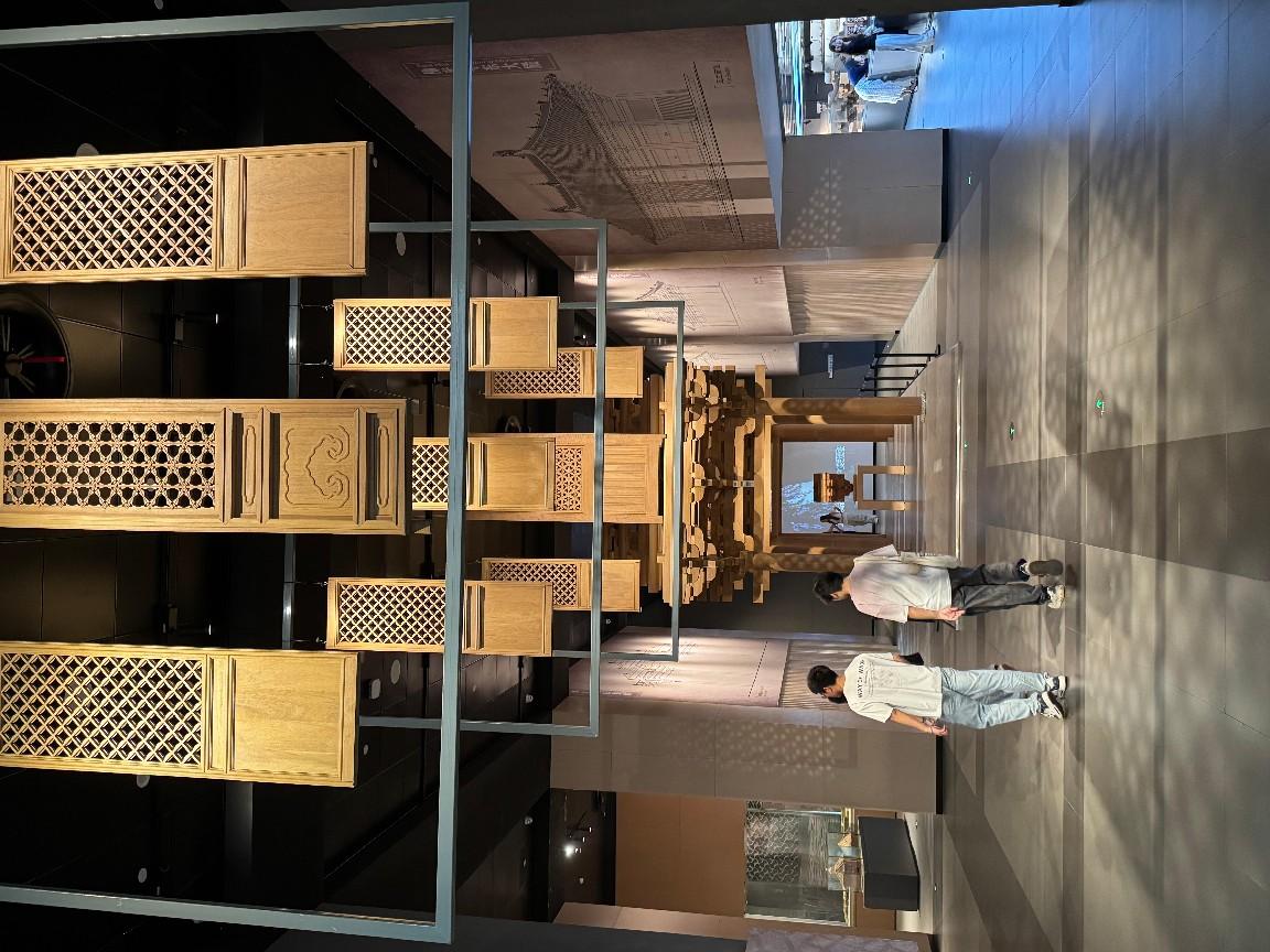 下午,考察团队来到中国建筑科技馆,沉浸式体验了正在展出的‘芥子须弥・开化 —— 高平开化寺宋代建筑与壁画数字艺术展’。该展览基于清华大学建筑学院二十余年研究成果,通过 VR 漫游、裸眼 3D、场景复原等技术,将宋代建筑彩画、市井生活与哲学思想立体呈现。