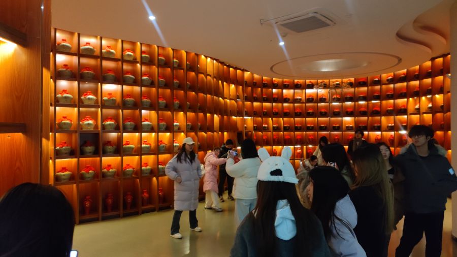 次日,同学们走进黄鹤楼酒业集团,开启企业实践之旅。在工作人员的引导下,大家参观了酿造车间、酒文化博物馆与品牌展示区,近距离感受传统酿酒工艺的传承与现代企业品牌设计的创新。从酒标设计的文化内涵到企业宣传片的数字呈现,从厂区环境的景观规划到文创产品的创意开发,同学们直观了解了解到数字媒体在企业文化传播、品牌IP打造中的实际应用,对行业就业方向有了更清晰的认知。
