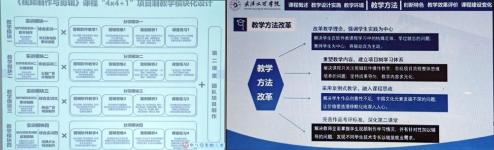 内容聚焦:吴聪教授以其申报视频作为开头,系统分析了申报国家一流课程《视频制作与剪辑》课程“4*4+1”项目制教学模块化设计,将课程整合为四大教学模块,授课内容与实训组合,分项主要知识点模块内容,集教学、思维训练、案例解析、课堂实训为一体。同时,他也强调了一流课程申报中需要将课程特点,教学设计,教学环境、教学方法、创新特色、课程建设模块等多个方面的内容逐一呈现。他提醒,在视频制作技巧中注重时间节点的底部标签栏制作,便于专家审阅的便捷性。明确《视频制作与剪辑》课程定位是数字媒体艺术专业数字化与视频化转型的重点,提出课程目标除了教导学生理论知识以外,也要全方位把控包括微电影、视频短剧等项目的创作方法和实施路径。