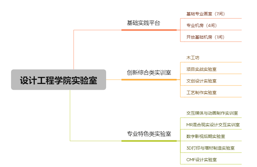 我院实验室主要以设计实践为主,共有三类实验室,共计21间。三类实验室分别为:基础实践平台、创新综合类实训室、专业特色类实验室。